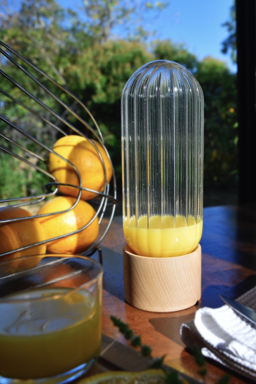 Lorsque l’on s’intéresse à la manière dont les boissons sont servies, on s’aperçoit rapidement qu’il existe des carafes à eau, à vin ou à whisky, mais peut-on en dire autant des jus, des sirops ou des boissons artisanales ? C’est de ce constat qu’est née Galipette, une bouteille originale qui fusionne l’action de remuer un jus de fruit, tout en le servant. Galipette est à l’envers. Le simple fait de la retourner, de dévisser le socle et de se servir un grand verre, permet de remuer le liquide se trouvant à l’intérieur.