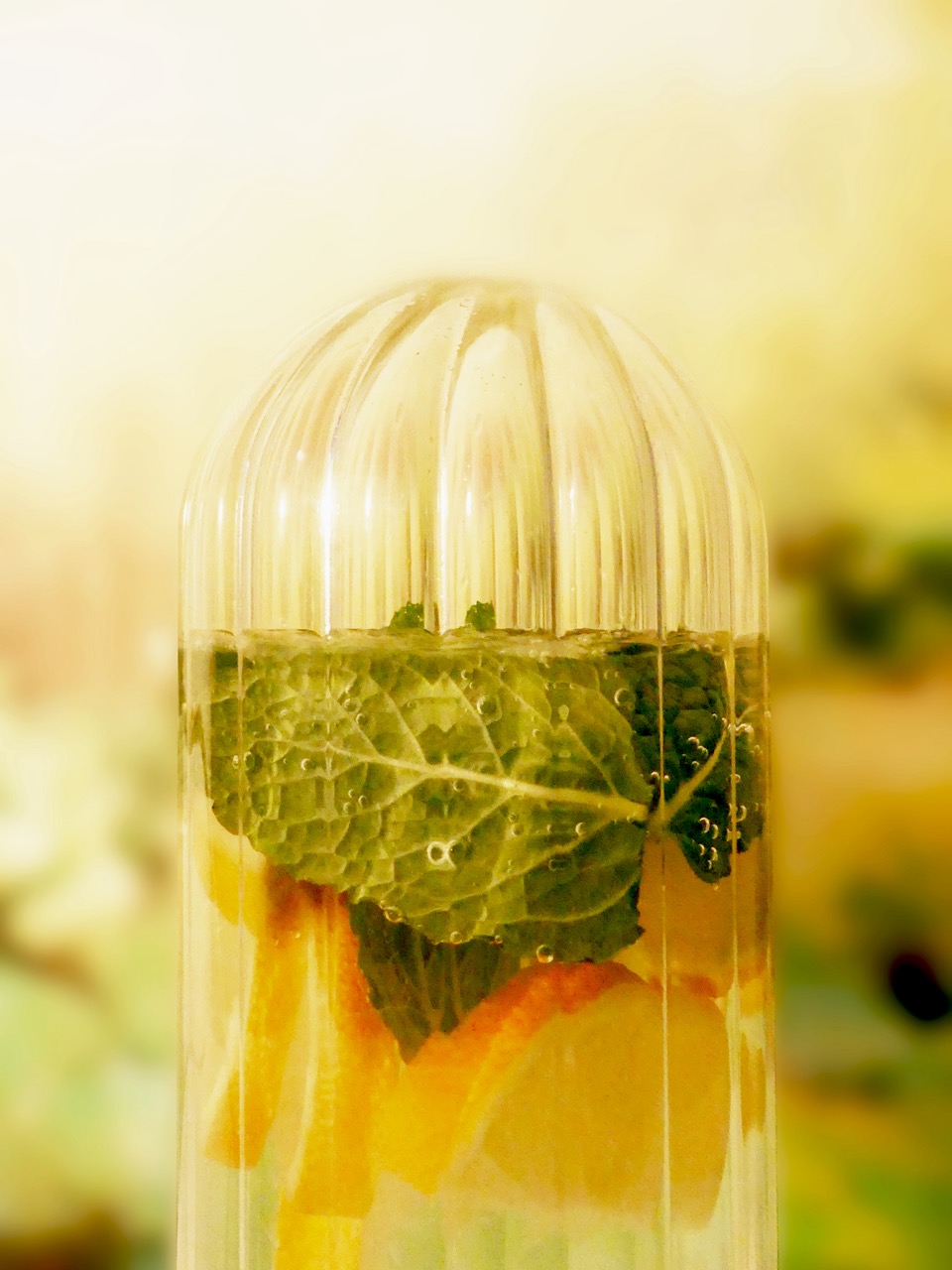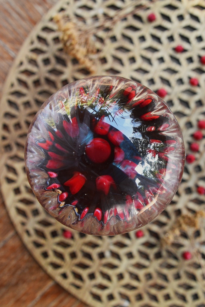 Verre, bois massif recyclé et bouchon en plastique