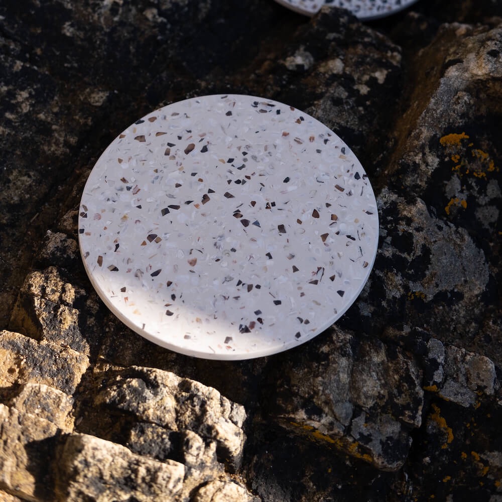 Réalisés à partir de coquillages bretons revalorisés et selon un savoir-faire artisanal,les dessous de verre HELIOS sont dessinés par Malakio pour sublimer vos tables.