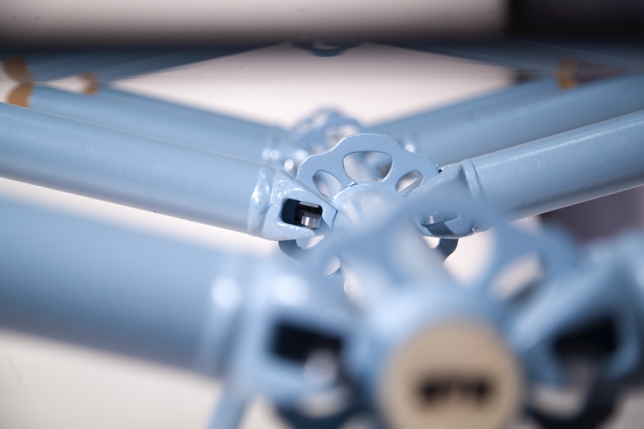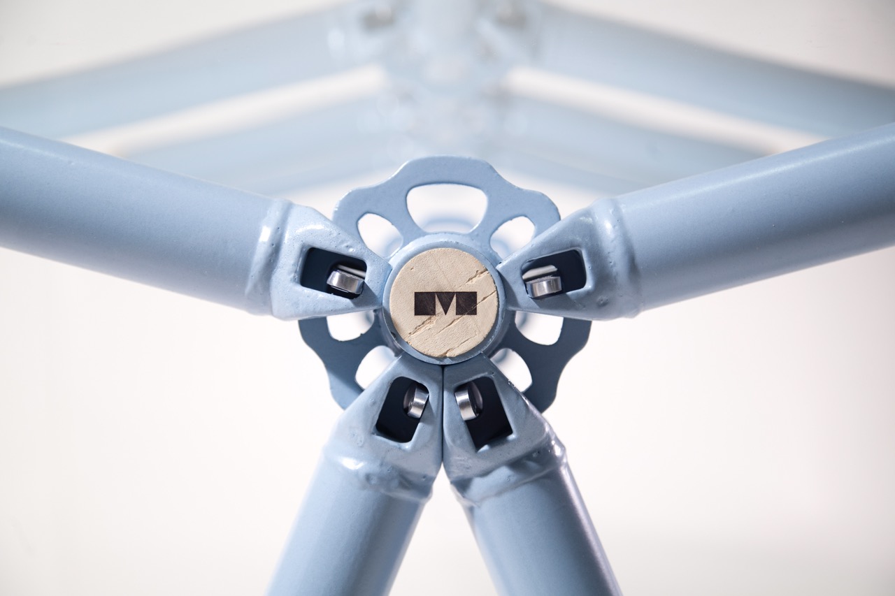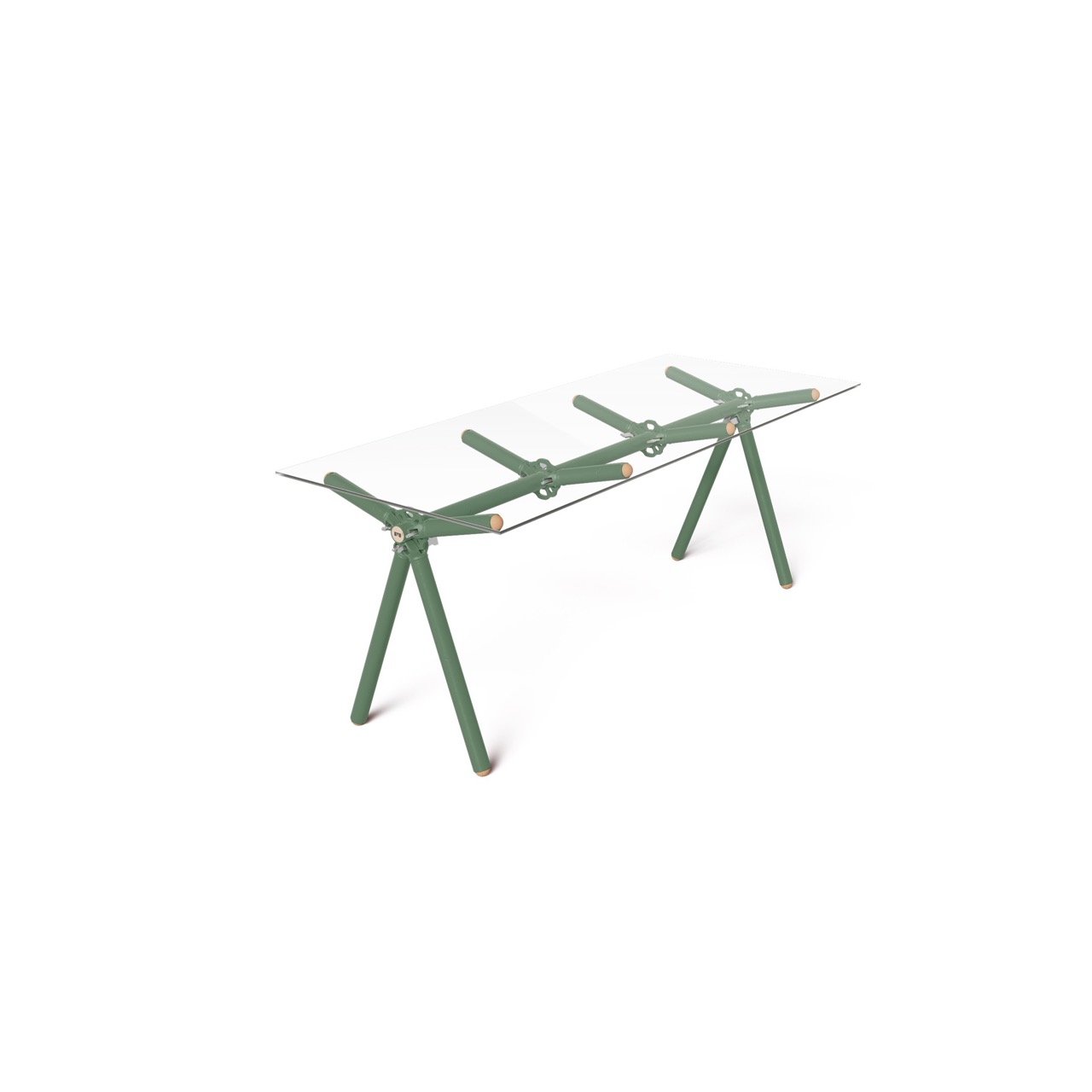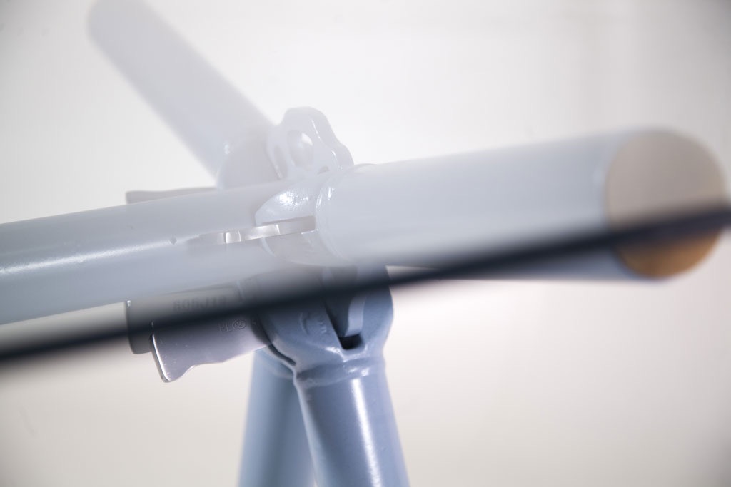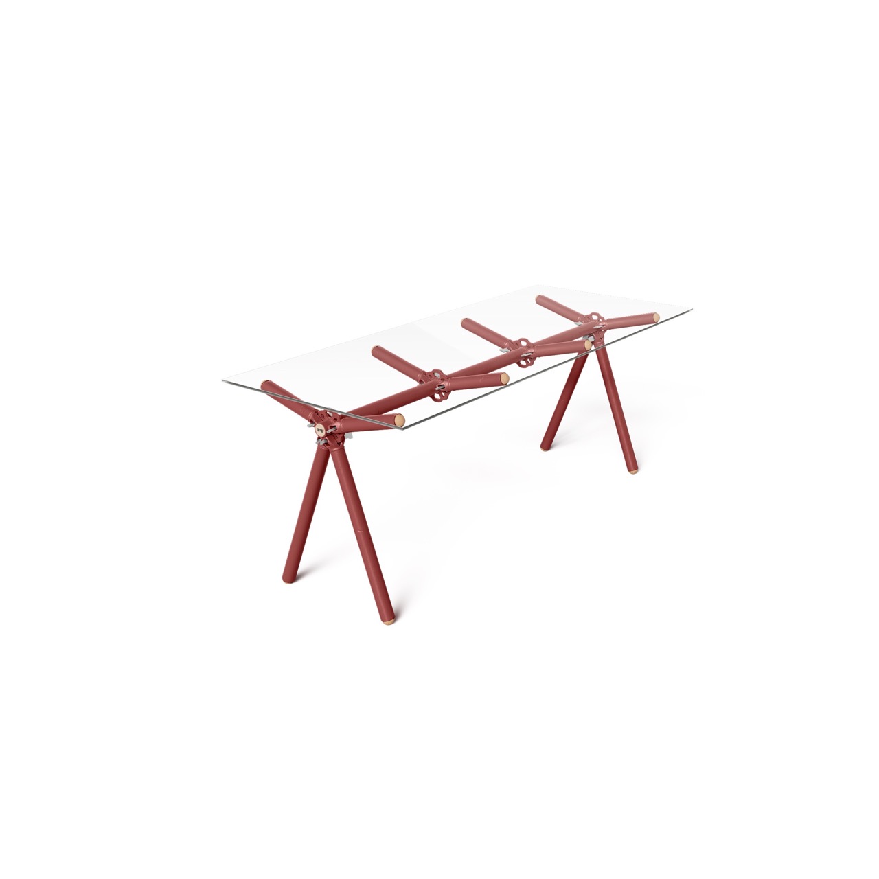 Le liège utilisé pour finir l’extrémité des tubes d’échafaudages est issu de bouchons de vin broyés. Le plateau de verre est simplement posé dessus et c’est juste ce qu’il faut pour ne pas qu’il glisse.